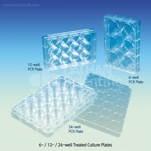Application & Features /»ç¿ë ºÐ¾ß ¹× Ư¡ * Wide Range Application : General Cell Growth Experiments, Cloning Studies, Virus Isolation, Susceptibility Test, In-vitro Testing. * Suitable for all Common Instrument and Automation. * Wide Applicability in Both Adherent and Suspension Cell Lines. * Sterilized by Gamma Radiation : °³º° ¸ê±Õ Æ÷Àå (1pcs / Inner Bag Pack). * 100% USP VI Crystal Class Virgin Polystyrene : GPPS ÀçÁú. * Special Surface Treatment : Á¢Âø ¹è¾çÀ» À§ÇÑ Æ¯¼ö Ç¥¸é ó¸®. * Available with 4 Different Growth Surface Area of 6- / 12- / 24- / 96-wells. * Uniform Wall ensures Equal Growth Surface Area. * Alphanumeric Code for Easy Identification. * Single Position Lid reduces the Risk of Cross-contamination and the Handling Mistakes. * Flat Well Bottom. * External Size (6- / 12- / 24-well) : w127.6¡¿d85.4¡¿h22.4§® (with Lid). * External Size (96-well) : w127.6¡¿d85.4¡¿h16.4§® (with Lid).