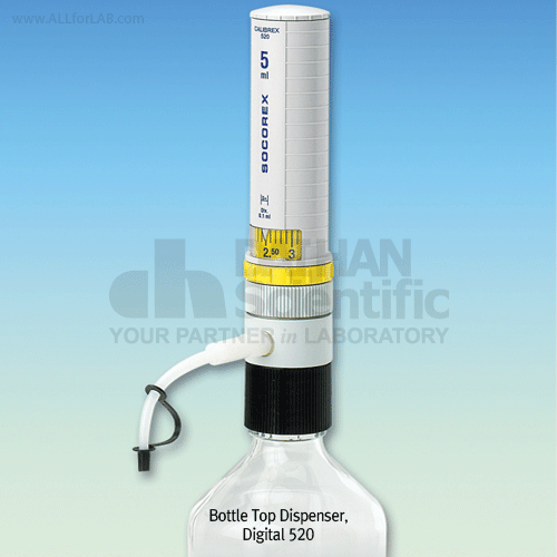(1) Calibrex(R) Digital 520 Bottle Top Dispensers, 2∙5∙10§¢ * Bottle º°¸Å * 32§® Screw Thread * 28/38/45§® Screw Thread ¾Æ´äÅÍ, 300§® Feed TubeÆ÷ÇÔ. WH.844000 Dispenser, Bottle top, 0.25~2§¢, 0.05§¢, <¡¾0.6%, <0.1 CV% WH.844002 Dispenser, Bottle top, 1~5§¢, 0.10§¢, <¡¾0.6%, <0.1 CV% WH.844004 Dispenser, Bottle top, 1~10§¢, 0.25§¢, <¡¾0.6%, <0.1 CV%
