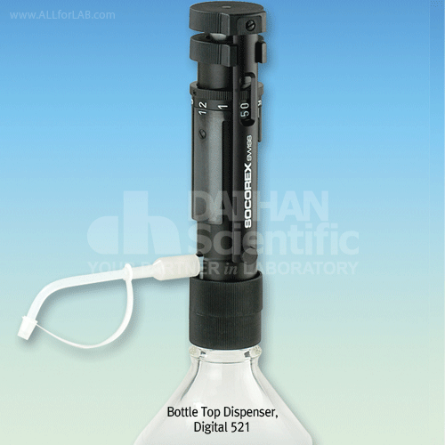 (2) Calibrex(R) Digital 521 Bottle Top Dispensers, 21∙59∙109§¢ * Bottle º°¸Å * 32§® Screw Thread * 28/38/45§® Screw Thread ¾Æ´äÅÍ, 300§® Feed TubeÆ÷ÇÔ. WH.844021 Dispenser, Bottle top, 2.0~20.9§¢, 0.1§¢,<¡¾0.6%, <0.1 CV% WH.844022 Dispenser, Bottle top, 10~59§¢, 1.0§¢,<¡¾0.6%, <0.1 CV% WH.844023 Dispenser, Bottle top, 10~109§¢, 1.0§¢,<¡¾0.6%, <0.1 CV%